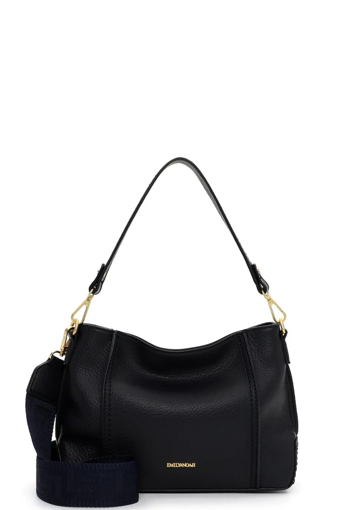 The bag JULIE of the brand Emily & Noah combines timeless elegance and practicality every day. Designed in a classic style, this versatile piece fits perfectly into any occasion, whether for professional use or a more casual moment. Its sober and elegant design makes it an essential accessory to sublimate each outfit. Made with a durable synthetic lining, this bag offers an ideal balance between durability and comfort. Careful details, such as closures and gold-toned rings, bring a touch of understated sophistication. The adjustment of the leather strap, complemented by a strap in navy fabric, allows to adapt it according to your preferences and needs of the moment. Ergonomics and comfort are at the heart of its design, with a special attention to aesthetics for a result that is both practical and aesthetic. The brand name "EMILY NOAH" is delicately engraved in golden letters on the front, reinforcing its identity and timeless charm. A piece that brilliantly combines utility and refinement. -