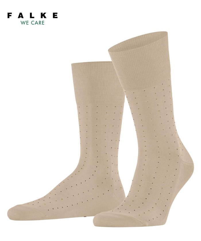 These M's Tiago Dotted Line city socks from the Falke brand combine timeless elegance with everyday comfort. Made from a premium blend of 93% organic cotton, 5% polyamide and 2% elastane, they offer natural softness while ensuring optimal breathability for prolonged use. Their lightweight upper and classic fit make them ideal allies for office, evening or relaxing moments, while their beige hue subtly dotted with small dots is a discreet tribute to minimalist elegance. The neat construction, including reinforcements at the toes for better resistance, and the elastic finishes around the opening ensure both durability and ease. Perfect for those looking for a balance between stylish style and everyday comfort, these socks embody the essence of a timeless wardrobe. -