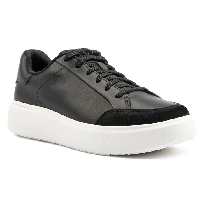 RTG from Fit Flop, an elegant and versatile pair of sneakers. Its leather and suede tops and uppers offer a perfect combination of style and comfort. The textile lining ensures optimal lightness and flexibility. The textile insole ensures a natural walking feel, while the synthetic outsole provides durability and wear resistance. The leather sneaker details add a touch of sophistication to this pair of sneakers. Available in black, the Fit Flop RTG is ideal for everyday occasions, whether for walks, leisure or city trips. Its modern design and functional appearance make it a versatile and comfortable pair of sneakers. -