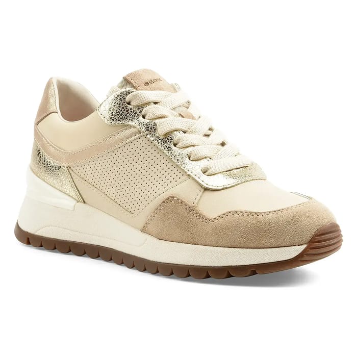 The Geox D DESYA combine elegance and comfort in a timeless fashion silhouette. Designed to be worn on a daily basis, these leather and suede sneakers offer trendy style and optimal versatility for leisure or an outing in the city. The leather and suede top, combined with similar material details around the toe and heel, brings a stylish touch. The cream rubber outsole ensures discreet durability, while the textile lining and removable insole contribute to optimal comfort throughout the day. The breathable sole, emblematic of Geox, ensures good interior ventilation for immediate well-being. A sleek design with beige laces and an iconic discreet Geox signature close to the collar completes this model that embodies modern comfort. -