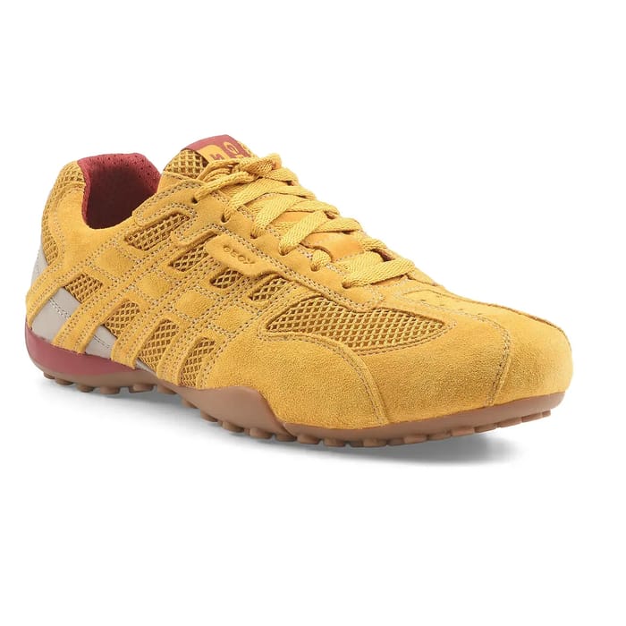 The Geox SNAKE shoes combine elegance and comfort in a versatile design suitable for both office and outings or everyday use. Crafted in a blend of textile suede and velvet leather, they offer a stylish aesthetic in a vibrant mustard yellow hue. The rubber sole, featuring textured uppers, ensures discreet stability while contributing to the durability of the model. The red fabric interior brings a contrasting and warm touch, while the removable leather insole allows for a custom fit. Thanks to their breathable design, these sneakers stand out as an ideal choice for well-being throughout the day. Geox know-how, renowned for its technological innovations and unparalleled comfort, is expressed here in a classic model that combines style and functionality. -