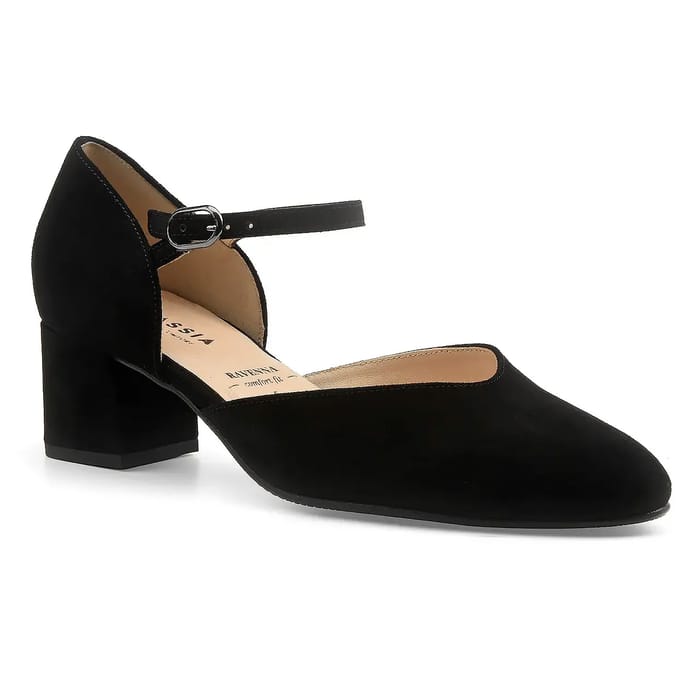 These RAVENNA H pumps from the Hassia brand combine timeless elegance with elegant sophistication. Designed in a velvety suede of a deep black, they espouse the silhouette with a natural softness, while affirming a chic and versatile style. The leather lining and insole, also made of leather, ensure optimal comfort for long-range wear, whether at the office, during an evening or a special event. The 45 mm heel, both stable and elegant, lifts the silhouette without sacrificing comfort. Minimalist details, such as the velvety finish and sleek lines, enhance the stylish look of these pumps, perfect for those looking for a balance between allure and practicality. An essential piece to sublimate each outfit with discretion and elegance. -