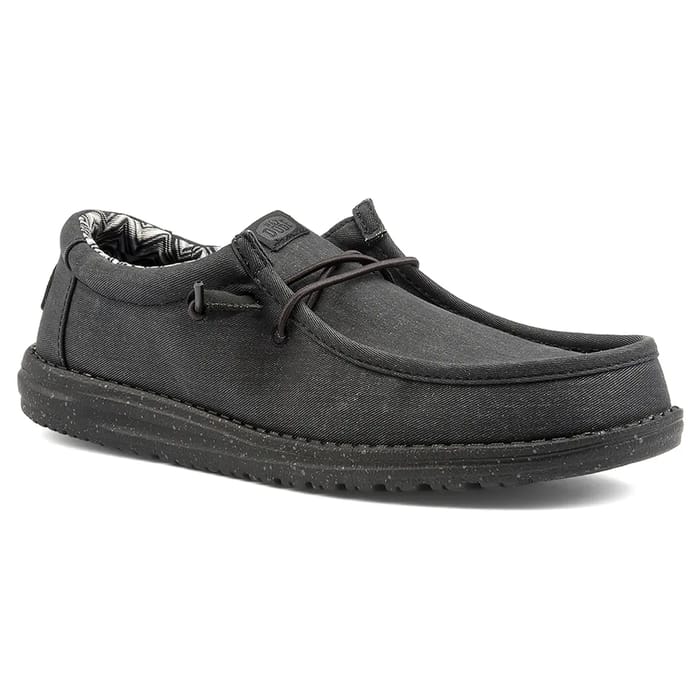 The Wally Canvas, created by the brand Hey dude, are casual and chic sports loafers. They are designed for everyday use, suitable for both work, outings and daily activities. These lightweight and comfortable shoes feature a removable memory foam insole, providing a perfect fit and optimal flexibility. The extra light rubber outsole guarantees exceptional lightness and flexibility. The top and upper are made of textile, while the lining is also made of textile, offering a combination of comfort and durability. The Wally Canvas are available in black, an elegant and neutral color that suits all styles. The details of these shoes include a textile slip-on, without laces or buckles, which facilitates entry and adjustment. A small belt detail near the opening adds to its aesthetics. The outsole is textured, offering exceptional durability and resistance. The Wally Canvas are the ideal shoes for those looking for a mix of comfort, versatility and style. -