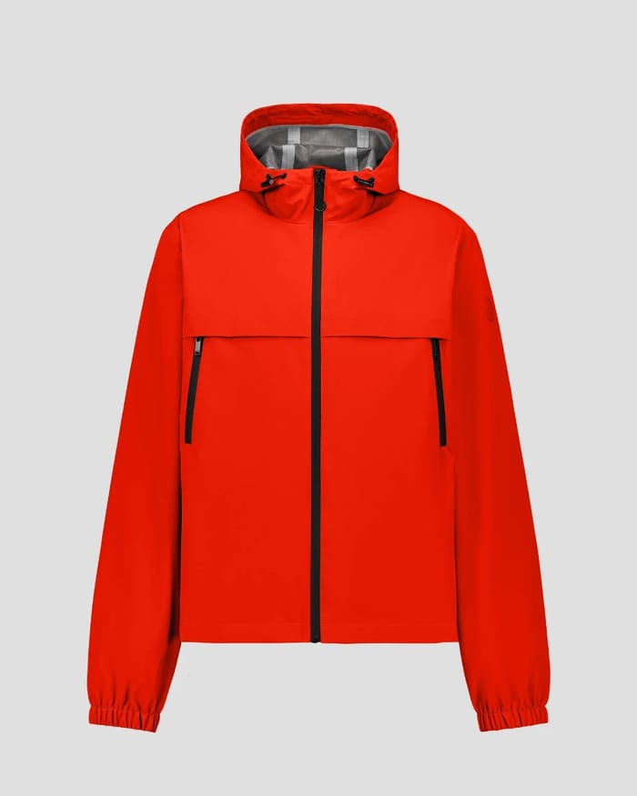 The rain jacket M's NOSTE of the brand Jott combines elegance and practicality to adapt to every occasion of everyday life. Designed in a style that is both casual and chic, this versatile piece is ideal for work, outings or urban trips. Its sober and timeless design, marked by a bright red color that captures attention, blends perfectly with a modern wardrobe. Featuring an integral black zipper along the entire length, it ensures optimal protection against the weather while remaining easy to put on. The fit is neat thanks to a lace-up hood and elastic cuffs, ensuring optimal comfort even in windy weather. Two zipped side pockets, strategically positioned on the chest, provide a convenient space to store your essentials without sacrificing style. The hood interior, contrasting in grey, brings a subtle touch while reinforcing the functional appearance of the garment. Lightweight and probably waterproof, this rain jacket embodies the perfect balance between utility and aesthetics, for days when the weather changes without warning. -