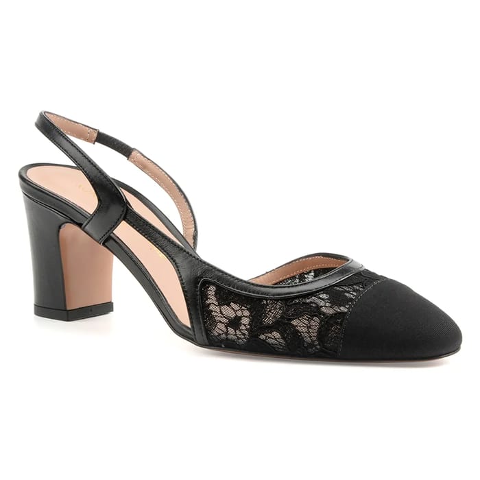 leather and textile slingbacks