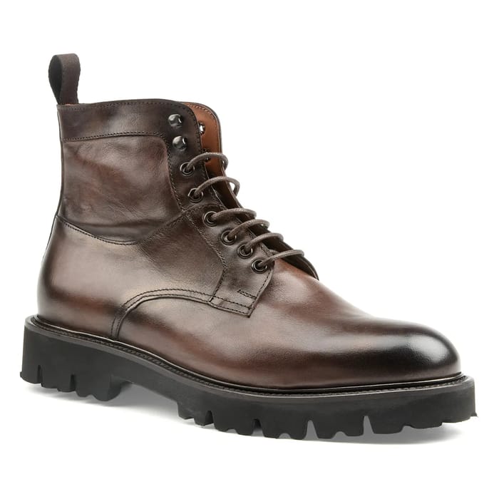 The Konstantin starke Faggio Boot stands out as an iconic shoe for lovers of timeless fashion and superior quality. Crafted from premium leather, these lace-up ankle boots combine elegance and robustness in a premium design. The carefully crafted dark brown top comes with a leather inner lining for all-day comfort. The lightweight rubber sole offers remarkable lightness while ensuring good support and effective protection. Details such as metallic works, black round laces and visible stitching bring a refined artisan touch. This high-end model is suitable for autumn/winter outings as well as outdoor activities or work, thanks to its relaxed, robust and functional appearance. An essential piece for those looking for a trendy, durable and full of character shoe. -