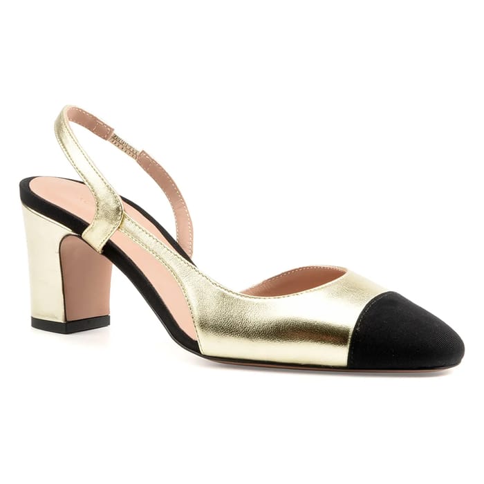 The SHIRLEY shoes from the Konstantin starke brand combine elegance and modernity in a high quality design. Designed for moments when style makes a difference, these metallic leather and textile slingbacks adorned with a golden sling bring a touch of refinement to any outfit. The insole and leather lining ensure optimal comfort, while the leather sole offers stylish stability. The 75 mm heel, thin and slender, highlights the silhouette with an assertive appearance. Perfect for parties, events or a day in the office, these shoes are an essential fashion accessory. Available in a chic and elegant range, they are part of a high-end collection that emphasizes artisanal craftsmanship and neat details. -