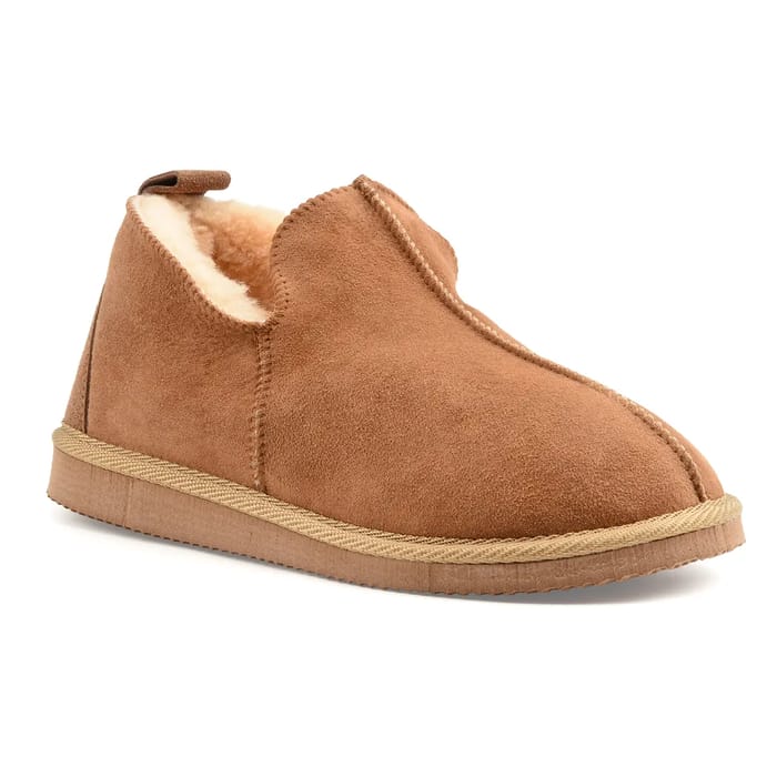 The Noccio by La thuile are slippers designed to bring comfort and warmth to your home. They feature an inverted sheepskin top, soft and supple, with a sheepskin lining that ensures maximum softness. The sheepskin insole enhances comfort, while a rubber outsole ensures optimal flexibility and durability. With a 10 mm heel, they offer a perfect balance between elegance and functionality. Every detail, including the visible seams and the small shooter on the back, contributes to a convenient and pleasant use. In cognac color, these slippers adapt perfectly to a warm atmosphere, ideal for relaxation or for moments of rest in winter. Their functional appearance includes remarkable softness, natural flexibility and an immediate feeling of warmth. They are designed to be used at home, during relaxation or winter season, offering comfort without compromise. -