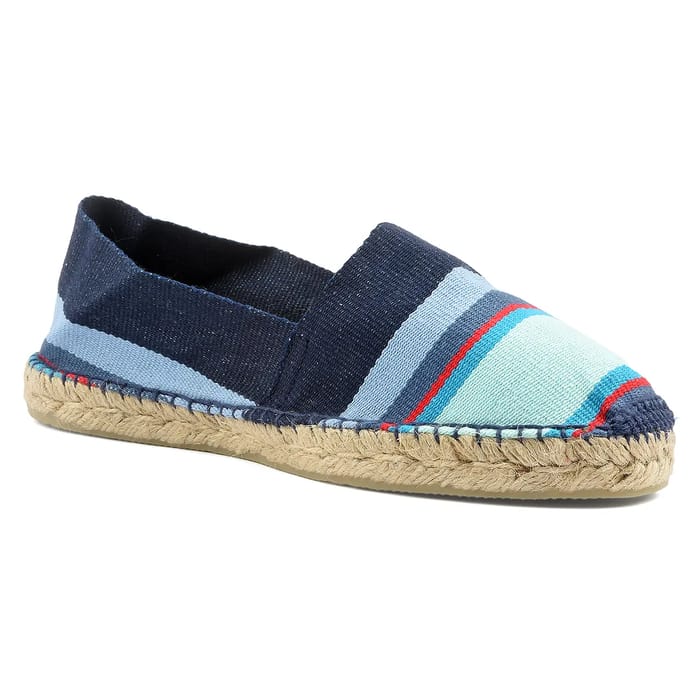 Cordoba, the espadrilles of Lormy, are designed for a casual and summery summer. These shoes are perfect for a holiday or a day at the beach. Their casual style and functional appearance make them an ideal choice for hot months. The Cordoba are made with a textile top and upper, offering exceptional breathability and comfort. Their rope insole and rope and rubber outsole guarantee unparalleled lightness and flexibility. The functional aspect of these espadrilles is also highlighted by their design without laces or clasp, which facilitates their wearing. The Cordoba are available in a pretty blue color, with horizontal stripes in navy blue, light blue and red. Their top is designed to combine dark and light tones, creating a nice band pattern. The Cordoba is a statement of style that combines tradition and modernity. -