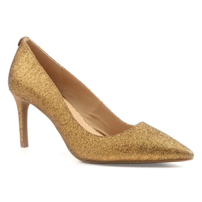 The ALINA pumps from Michael Kors are a perfect accessory for evenings and formal events. Designed to bring a touch of refinement and fashion to your look, these pumps are made of leather and gold sequins, giving a bright and elegant effect. Their 80mm heel adds a touch of sophistication, while their slim tip and classic pump design make them ideal for standing occasions. The inside of the shoe is lined with leather, offering softness and superior quality. The ALINA pumps are a chic and elegant choice for women who want to stand out with style. -