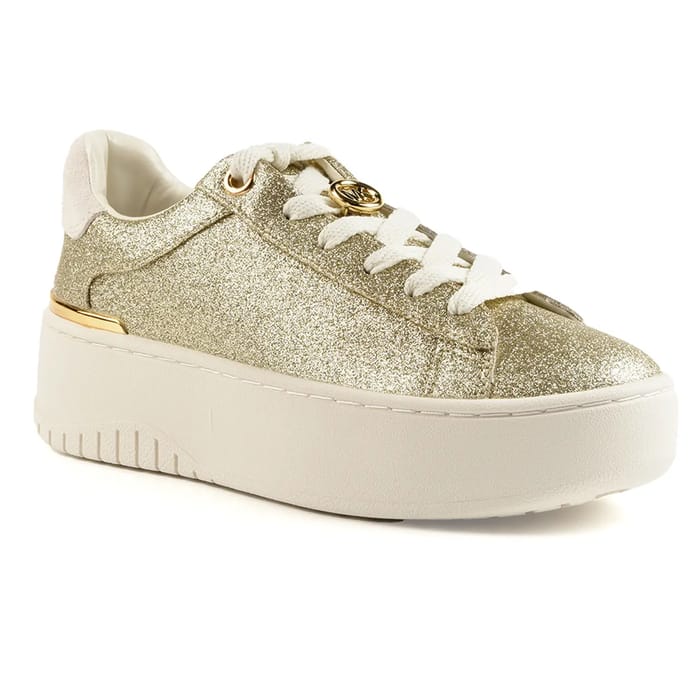 The Low sneakers LACE UP DOTTIE by Michael Kors are trendy shoes that combine elegance and comfort. Their leather upper and sequined upper offer a touch of glamour, while their white laces bring a touch of simplicity. Textile insoles ensure optimal comfort, while synthetic insoles offer durability and wear resistance. The heels measure 49 mm, making them ideal for walking or leisure activities. The shoe details, such as the metal eyelets and the small patch, add a touch of sophistication. The gold color is a touch of luxury that makes them perfect for everyday occasions or outings in style. The Michael Kors Low sneakers LACE UP DOTTIE are designed for everyday use, but they can also be worn for leisure activities or outings in mode. -