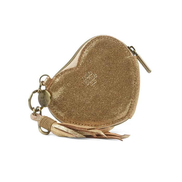 This LOVE wallet from the brand Mila Louise combines elegance and practicality to sublimate your daily life. Designed in a timeless style, this small heart-shaped model stands out for its sparkling golden finish, bringing a touch of sophistication to every use. The polyester lining ensures optimal protection for your rooms, while the secure zipper ensures discreet storage and extended storage of your belongings. Ideal for commuting or everyday organization, this wallet attaches easily to a key thanks to a resistant leather buckle. Its functional and stylish design makes it a versatile accessory, perfect for safely carrying cards, coins or small essentials. The presence of a decorative tassel, composed of thin strips with warm shades, adds a note of originality and charm to this everyday object. Made to last, this wallet embodies the perfect combination of utility and aesthetics, reflecting the elegant spirit of the Mila Louise brand. -
