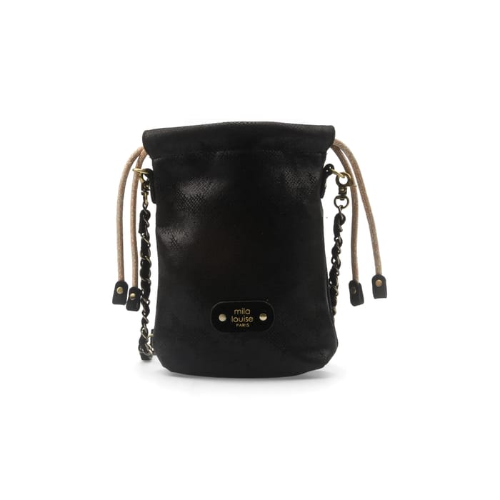 The MAI shoulder bag from the brand Mila Louise combines timeless elegance and audacious modernity. Designed in durable textile, this model stands out for its chic design and sophisticated look, perfect for sublimating your outings, office days or getaways. Its deep black color, enhanced by gold metal details, brings a stylish and timeless touch. Ergonomics is at the heart of its design, with a comfortable shoulder strap and a structure designed for practical everyday use. The polyester lining ensures optimal protection for your business, while stylish finishes, such as the decorative chain and the "mila louise PARIS" label engraved in golden letters, reinforce its luxurious character. Lightweight and versatile, this bag embodies the perfect blend of style and functionality, for those seeking excellence in every detail. -