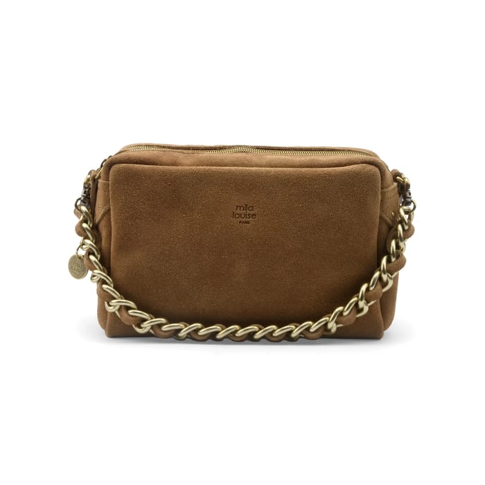 The MAMA shoulder bag from the brand Mila Louise combines elegance and modernity to adapt to any occasion. Designed in velvet leather with a timeless khaki tone, this bag embodies a style that is both chic and casual, perfect for office, outings or trips. Its polyester lining ensures optimal protection for your business, while its discreet zipper ensures safety and practicality. Ergonomics is at the heart of its design, with a golden chain shoulder strap, both aesthetic and resistant, which slides easily on the shoulder for a comfortable wearing. The detail engraved "mila louise PARIS" on the facade brings a refined touch, while a small metal label engraved with the brand name completes the set with sophistication. Compact and versatile, this bag proves to be a must for those looking for style and functionality on a daily basis. -