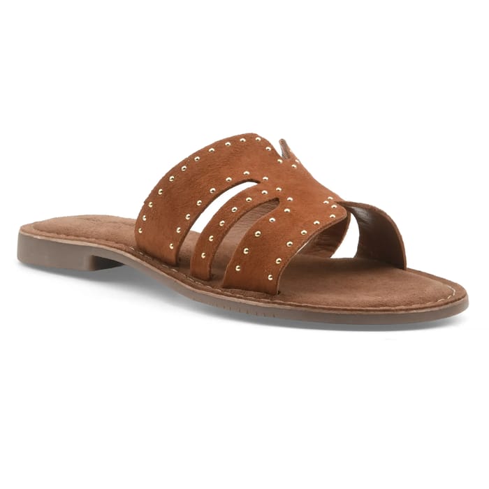 These Miss Behave IF 10309 mules combine elegance and comfort for outings or everyday use, ideal for summer. Designed in cognac velvet leather, they offer a soft touch and a refined aesthetic, enhanced by discreet nails that add a modern touch. The leather lining ensures a pleasant fit, while the rubber sole ensures a smooth and natural walk. With a 15 mm heel, they bring a slight height without sacrificing comfort, perfect for moments of relaxation or walks around the city. Their minimalist design and warm color make them a versatile accessory, both casual and stylish. -