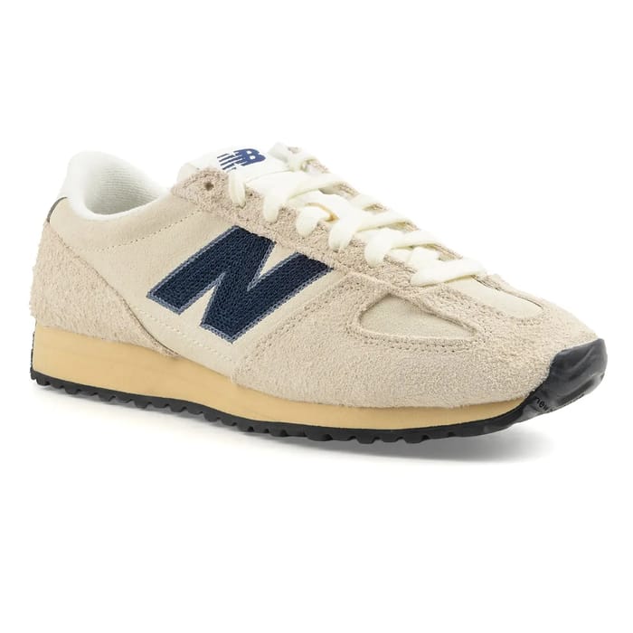 The New Balance 471 stand out as a trendy and elegant shoe, perfectly suited for everyday use. Designed with a beige textile suede top, this sneaker combines softness and timeless style. Its rubber sole offers good comfort throughout the day, while its textile upper ensures excellent breathability. The removable insole allows for customization of interior comfort. The sleek design, enhanced by a tongue with label marking and a dark blue N logo on the heel, reinforces its modern look. Available in beige, this model fits into the New Balance fashion range, ideal for both a casual outing and a day of walking. Season after season, New Balance maintains its undisputed place in the world of sportswear and fashion, combining functionality and aesthetics. -