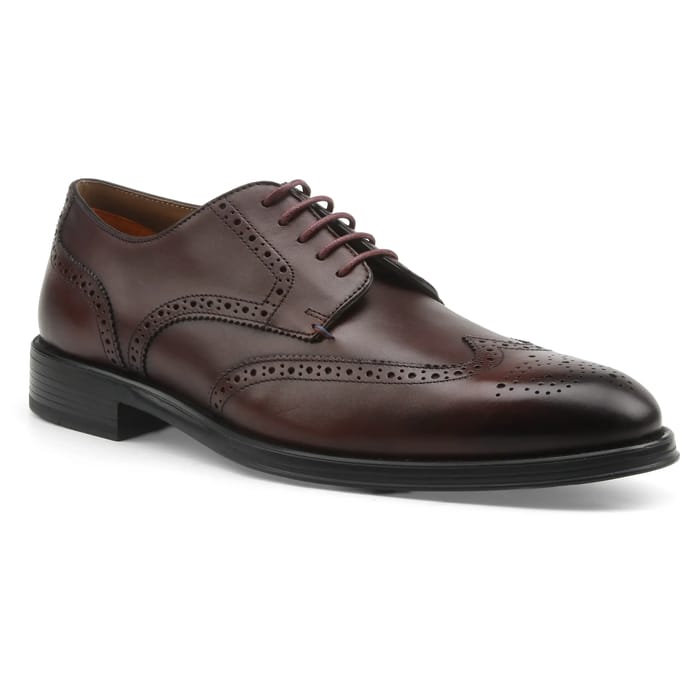 The Angelo by Paul Smith combine timeless elegance and versatility to fit any occasion. Designed as burgundy leather golf-toe derbies, these lace-up shoes embody a stylish classic style, perfect for both office and evening wear. Their solid leather upper, lined with a leather and textile blend, guarantees a precise fit and optimal comfort, even after a long day. The leather sole and rubber sole enhance durability, while ensuring a smooth and natural walk. Careful details, such as perforations and discreet serrations, add a touch of originality to this iconic model, while maintaining a sober and sophisticated look. A must for those looking for British excellence in their wardrobe. -