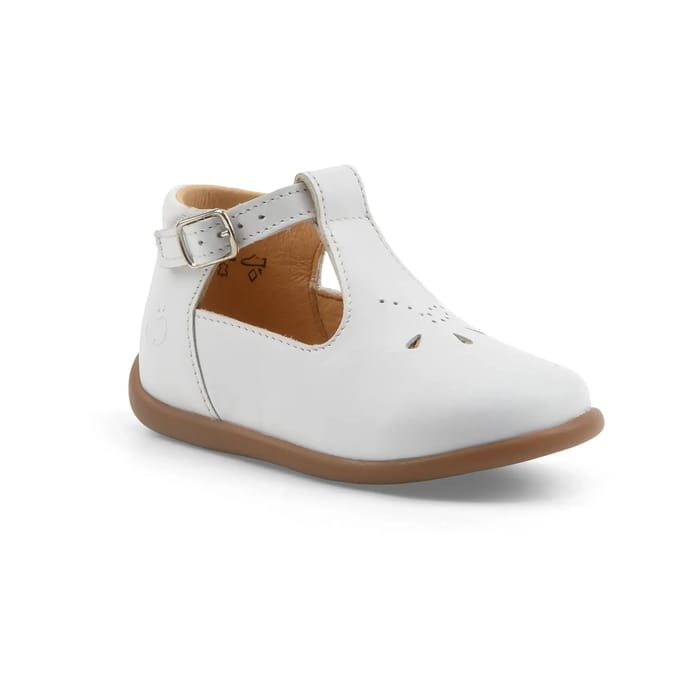 These Stand-up Salome flats from the Pom d'Api brand combine elegance and practicality for everyday use, whether for work or casual outings. Designed in white leather, they offer a chic yet timeless look, perfect for both young and old. Their rubber sole, combined with a leather insole, ensures optimal comfort throughout the day, while their lightness makes them ideal for versatile use. The detail of an adjustable strap with metal buckle ensures precise support, while the decorative perforations on the front provide a subtle and stylish touch. The leather lining, discreetly tinted, completes the set with a harmony of tones that highlights the neat design of this leather sandal. -