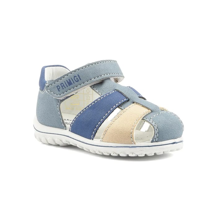 The Baby Sweet sandals from Primigi are designed for optimal comfort and lightness. Made of synthetic material, they feature a leather lining for exceptional softness and breathability. The leather insoles offer additional protection for the feet of little ones. The sandals are equipped with two wide stripes, one in blue and one in beige, retained by white stitching. A hook and tongue shoulder strap at the front bears the inscription "PRIMIGI" in white letters. The sandals are perfect for beach activities, holidays or everyday life. Gum soles provide solid protection and an ideal fit for small explorers. The Baby Sweet sandals from Primigi are available in blue, a perfect color for summer. -