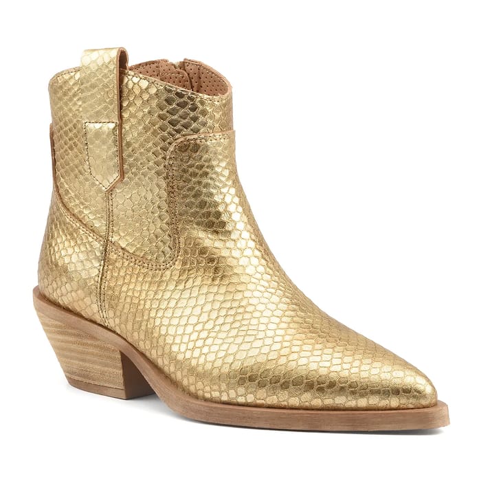 Discover Ralph Harrison's Platino ankle boots, a must-have for your wardrobe. These elegant and casual ankle boots are designed to accompany your outings, your days of work or your moments of leisure. Their shiny metallic leather and the snake texture that covers it create a unique and sophisticated look. The Platino ankle boots feature a synthetic sole for optimal protection and a textile lining for absolute comfort. The heel measures 50 mm, which guarantees an ideal height for an elegant silhouette. The details of the metallic leather western ankle boot add a touch of style and sophistication to your look. The Platino ankle boots are available in gold, a color that perfectly fits your wardrobe. They are designed to be timeless, will follow you season after season without ever going out of style. The essential basics of the dressing room, the Platinum ankle boots by Ralph Harrison are an essential choice for men who want to present themselves with elegance and style. -