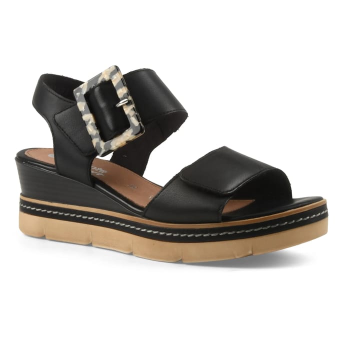 The LUGANO sandals from the Remonte brand combine elegance and sophistication to enhance every occasion. Designed in a stylish blend of leather and synthetic materials, they perfectly match the silhouette while bringing a touch of boldness with their 50 mm heel. Their neat design, marked by details like adjustable straps and textured inserts with shades of white, gray and brown, makes them a timeless yet resolutely modern accessory. Perfect for evenings, professional moments or ceremonies, these sandals combine refinement and support for optimal comfort. The durable, durable synthetic sole ensures lasting stability, while the textile lining and leather or synthetic insole ensure a comfortable fit, even after long hours. Their timeless black color integrates discreetly with all outfits, enhancing their versatility. A must for those looking for the perfect combination of style and practicality. -