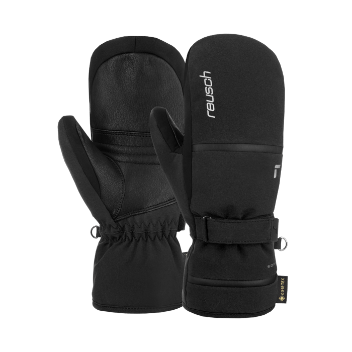 The W's ALISON GTX MITTEN ski gloves from the Reusch brand combine style and performance for winter activities. Designed in a technical and functional material, these gloves offer excellent thermal insulation thanks to their polyester lining and Gore-Tex membrane, guaranteeing warmth and breathability. Full waterproofness ensures optimal protection against damage and moisture. The top of the fingers and palm is made in a textured leather for a stable and reliable grip. An adjustable ankle strap, closed by a Velcro buckle system, holds the glove firmly in place, while the elastic hems prevent snow from entering. The sleek black design highlights the Reusch logo in white on the back of the right hand, as well as the inscription "GORE-TEX" on a small label near the wrist. These mittens are ideal for snow, cold and winter sports. -
