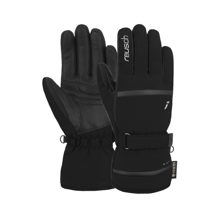 The W's ALISON GTX ski gloves from the Reusch brand combine style and performance for winter activities. Designed in a durable material with a textured finish, they offer excellent hold and increased durability. Fitted with a polyester lining and a GORE-TEX membrane, these gloves ensure total waterproofness as well as optimal breathability, even during prolonged exposure to cold. Their technical structure guarantees constant heat, essential for protection against cold. Adjustable straps on the wrists allow for a secure and personalized fit. Available in black, these gloves are part of a functional and technical range, ideal for winter sports and snow outings. The Reusch logo on the back of the hand and the GORE-TEX label on the side reinforce their technical identity and reliability in extreme conditions. -