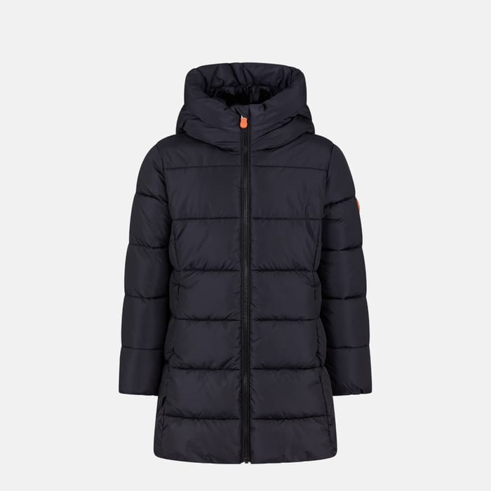 The K's GINNY jacket from Save the duck combines style and functionality to face the bad weather of winter. Made of an outer fabric and lining 100% nylon, it offers optimal warmth while remaining light. Its long design lengthens the silhouette while ensuring effective protection against low temperatures. The full zip is equipped with an orange tab for easy opening and closing. A removable hood enhances protection from the cold, while the surprising horizontal stitching gives the down jacket a structured, modern look. A discreet orange logo on the left sleeve adds a distinctive touch. Ideal for winter outings, outdoor activities or everyday life, this down jacket is an essential ally to stay warm without sacrificing comfort or style. -