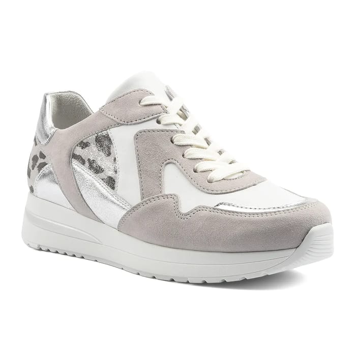 The Lilly H sneakers from the Semler brand are designed for women who want to stay fashionable while enjoying optimal comfort. These shoes are made of leather and velvet leather, with metallic leather details that add a touch of sophistication. The leather lining guarantees exceptional softness and flexibility. The leather insoles are removable, making it easy to maintain shoes. Gum outsoles offer strong protection and good cushioning. The Lilly H shoes feature an elegant design with velvet leather side panels and embossed panther accents on the sides near the foot area. The upper part is leather, while the lining is leather. The laces are white and contrast with the upper part in light grey. The sole is thick and white, with embossed details for a dynamic appearance. The Lilly H sneakers are perfect for women who want to stay fashionable while enjoying optimal comfort. They are suitable for everyday use, for walking or for leisure. The Semler Lilly H shoes offer a perfect combination of fashion, comfort and versatility. -