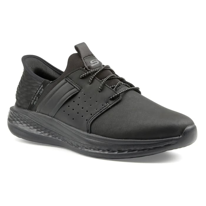 210828 BBK SKECHERS SLIP-INS RF: SLADE - ZACHARY Black Mesh / Leather -