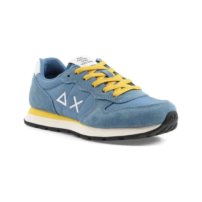 The Sun68 Boy's Tom solid are Velcro sneakers designed to combine style and everyday convenience. Their textile suede top, both soft and resistant, offers optimal comfort for prolonged use. The textile lining, removable for easy maintenance, guarantees optimal hygiene, while the insole, also textile and interchangeable, adapts to your preferences of softness or support. The rubber sole, robust and non-slip, ensures fluid mobility, ideal for urban trips or leisure. The casual design of these sneakers is distinguished by neat details: a velvet and textile leather sneaker, dynamic yellow laces and a white tongue contrasting with the light hue of the top. Two small triangular logos, discreet but elegant, adorn the side, reinforcing the identity of the brand. At the back of the tongue, a motivating inscription "RUN FASTER THAN YOU CAN" adds a touch of inspiration to each port. Perfect for everyday wear, these Sun68 sneakers combine versatility and comfort, whether for everyday trips or moments of relaxation. Their timeless style and ease of maintenance make them a must for lovers of sneakers that are both practical and stylish. -