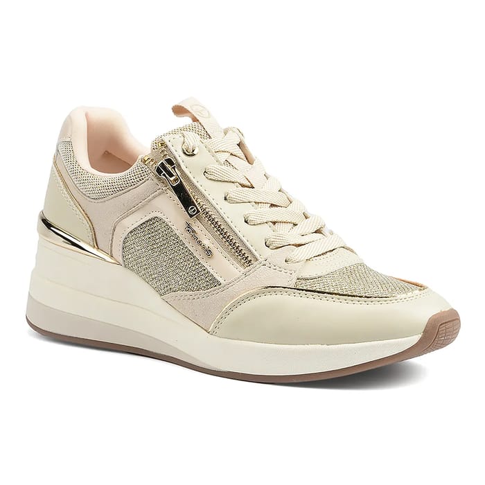 The Tamaris Zoe sneakers are a perfect choice for women looking for a mix of elegance and comfort. Designed for everyday activities, walking and leisure, these sneakers feature a trendy style and fashion. Their synthetic and velvet leather upper offers a combination of texture and breathability, while ensuring a comfortable fit. The white laces and metal eyelets add a stylish element, while the silver side zip makes it easy to fit. The removable textile insole ensures an optimal fit to the foot. Synthetic soles ensure optimal durability and protection. With a heel height of 60 mm, the Tamaris Zoe sneakers offer versatility and flexibility for everyday activities. The beige color is an ideal choice for women looking for an elegant and discreet outfit. The Tamaris Zoe sneakers are a smart choice for women who want to balance comfort, fashion and elegance. -