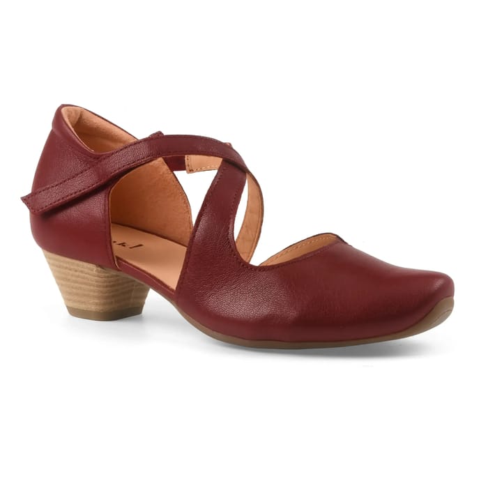 These AIDA 209 pumps from the Think brand combine timeless elegance with refinement to enhance every occasion. Designed in vegetable leather without chrome, they embody a chic and responsible style, perfect for parties, events or the office. Their smooth leather upper, enhanced by a lining and an insole also in vegetable leather, guarantees a lasting comfort while preserving the neat appearance of the model. The 35mm heel, both stable and stylish, fits a feminine silhouette gracefully, while the neat stitching details and understated buckle on the ankle strap add a touch of originality. Their deep red color, between burgundy and wine, brings a bold and timeless touch, ideal to mark the spirits without sacrificing refinement. A must for those looking for the perfect combination of style and comfort. -