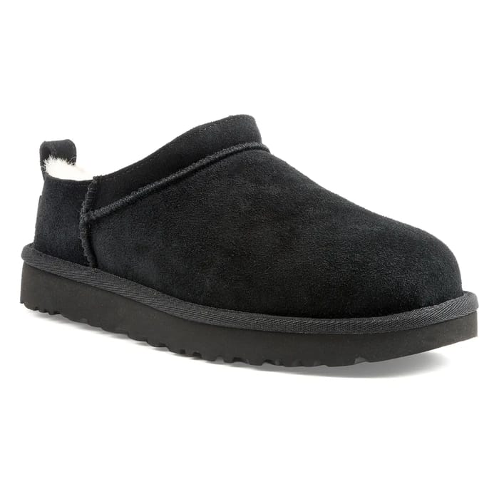 The W CLASSIC MICRO ankle boots from the UGG brand are designed for general and everyday use. These warm ankle boots are elegant and versatile, perfect for everyday occasions. Their hydrophobic turned sheepskin top is water resistant and easy to maintain. The sheepskin lining provides optimal comfort, while the rubber sole ensures durability. The boot details, like the stitching visible around the opening, add a touch of durability. The sheepskin insole ensures a comfortable feeling throughout the day. The W CLASSIC MICRO ankle boots are available in a variety of colours, but the black version is particularly popular. -
