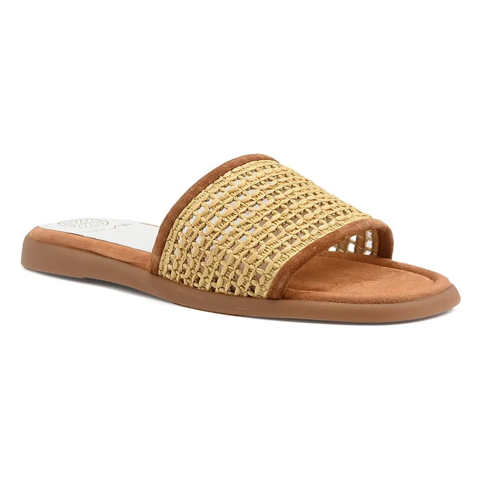 Unisa Cheek leather and raffia slides