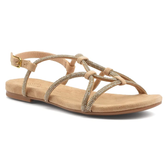 Discover the Cooper KS Sandals from the brand Unisa, perfect for summer days. These flat sandals are crafted in velvet leather and rhinestones, offering a casual and elegant look. The velvet leather used for the lining and insole ensures optimal comfort, while the rubber outsole offers exceptional lightness and breathability. The beige color is ideal for holidays or beach days, as it pairs perfectly with casual-style dresses and shorts. The Cooper KS sandals are also perfect for everyday wear, as they are lightweight and breathable. The details of these sandals are carefully designed to offer an elegant look and practical functionality. The 8 mm adjustable heel guarantees a perfect fit, while the leather lining and velvet leather used for the insole provide optimal comfort. The embossing of the brand name on the insole is a nice final touch. The Cooper KS sandals are available in a casual and summery product range, perfect for sunny days. They are ideal for people looking for an elegant look and convenient functionality for their vacation or beach days. -