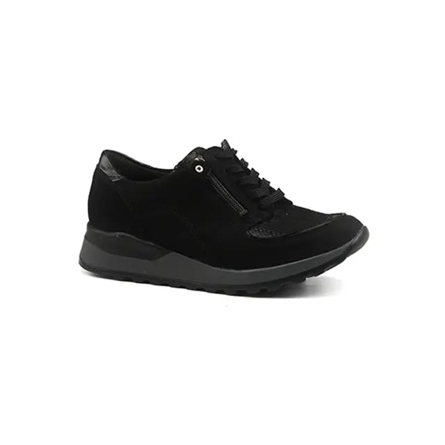 The Hiroko 20 shoes from the brand Waldlaufer are sneakers designed for lovers of fashion and comfort. Their nubuck and stretch upper and upper offer a combination of flexibility and resistance. The textile lining ensures optimal comfort throughout the day. Removable textile insoles offer a possibility of customization. The synthetic soles ensure durability and impact resistance. The heels measure 40 mm, offering an ideal height for everyday activities. Details of the shoe include a nubuck and stretch leather sneaker, adding a touch of sophistication. The black color is ideal for lovers of minimalist style. The Hiroko 20 shoes are designed for everyday activities, walking and leisure. They offer a functional look that combines fashion, comfort and versatility. -