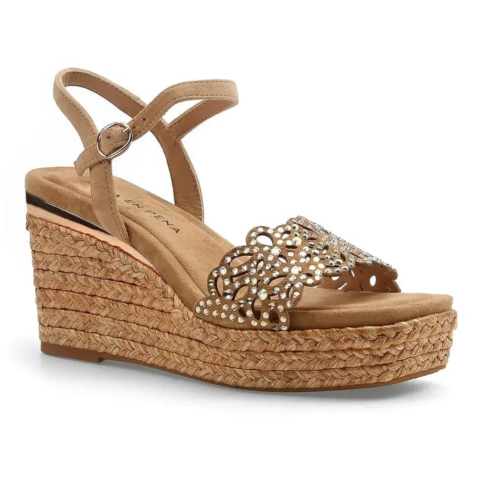 Ces sandales compensées Alma en pena 5505 allient élégance et sophistication pour sublimer vos tenues estivales ou vos soirées. Conçues dans un style féminin et résolument tendance, elles se distinguent par leur dessus en daim raffiné, rehaussé d’insertions de bijoux qui ajoutent une touche de brillance et de raffinement. La doublure en cuir et synthétique garantit un confort optimal tout au long de la journée, tandis que la semelle intérieure en velours apporte une douceur luxueuse à chaque pas. Le talon compensé de 80 mm offre une stabilité parfaite, idéale pour les sorties ou les moments où le style ne doit pas se sacrifier au confort. La semelle en gomme, robuste et résistante, assure une bonne tenue, tandis que la couleur beige, intemporelle, s’adapte à toutes les occasions. Parfaitement adaptées à un usage estival ou pour des soirées, ces sandales allient à la fois praticité et panache, pour un look à la fois chic et décontracté. -