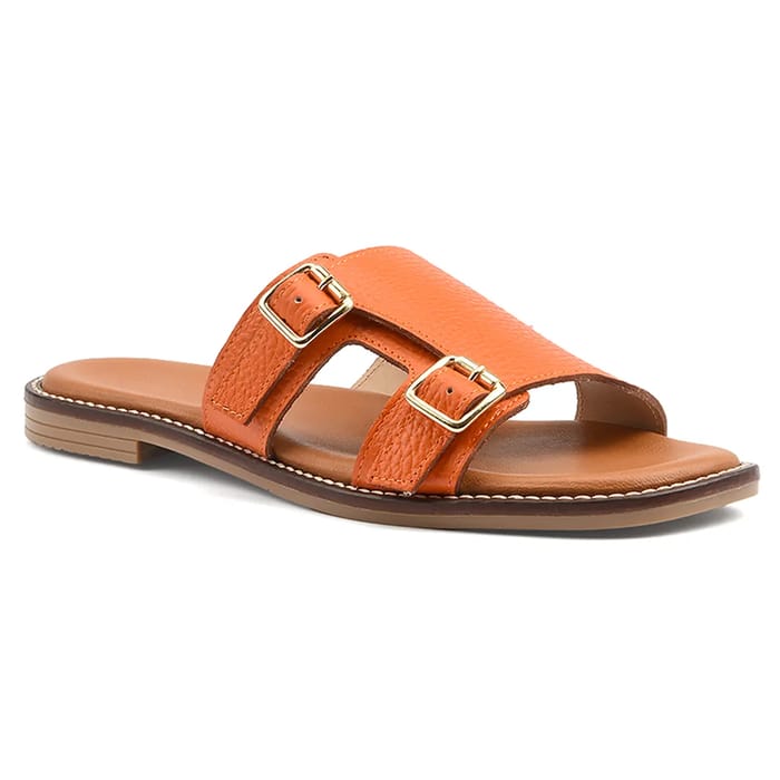 La sandale Amara d'Andrea Puccini est une pièce de fantaisie pour l'été. Cette mule en cuir orange est conçue pour une utilisation quotidienne, mais aussi pour les sorties en soirée. Son design décontracté et confortable la rend idéale pour les journées ensoleillées ou les soirées estivales. La sandale Amara est faite de cuir de haute qualité, avec une doublure en cuir pour une douceur maximale. La semelle intérieure en cuir assure une légèreté et une souplesse exceptionnelles. La semelle extérieure en gomme offre une durabilité et une résistance à l'usure. Les détails de la sandale Amara sont soigneusement conçus pour un look ultra-féminin. Les deux sangles ajustables en cuir sont ornées de fermoirs en ton or, ajoutant une touche de raffinement à l'ensemble. La texture du cuir et les détails de couture blancs ou en off-blanc ajoutent une touche de sophistication. La sandale Amara est une pièce de mode qui combine confort et mode. Elle est idéale pour les femmes qui recherchent une paire de sandales qui soit à la fois élégante et pratique. La gamme de produit décontracté et confortable de la marque Andrea Puccini garantit que la sandale Amara sera votre alliée pour les journées ensoleillées et les soirées estivales. -