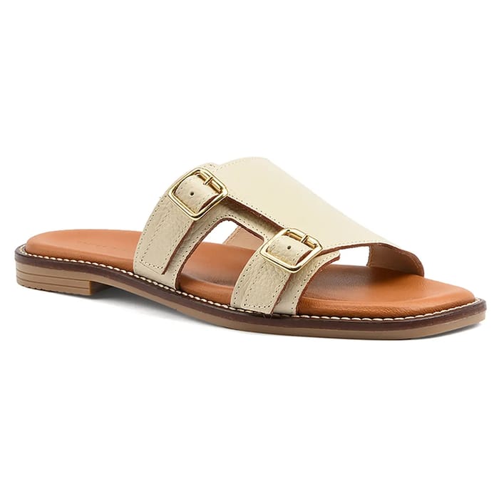 Les mules Amara d'Andrea Puccini sont des chaussures décontractées et confortables conçues pour les sorties estivales ou pour un usage quotidien. Fabriquées en cuir, elles offrent une légèreté et un confort exceptionnels. Leur design raffiné, caractéristique de la marque, se distingue par des détails de couture et une touche de féminité. Les mules Amara sont équipées de deux sangles ajustables munies de fermoirs dorés, ajoutant une touche de sophistication à leur design. Leur semelle intérieure et extérieure en cuir garantissent une durabilité et une qualité supérieures. Les mules Amara sont disponibles en écru, une couleur neutre qui convient à toutes les occasions. -