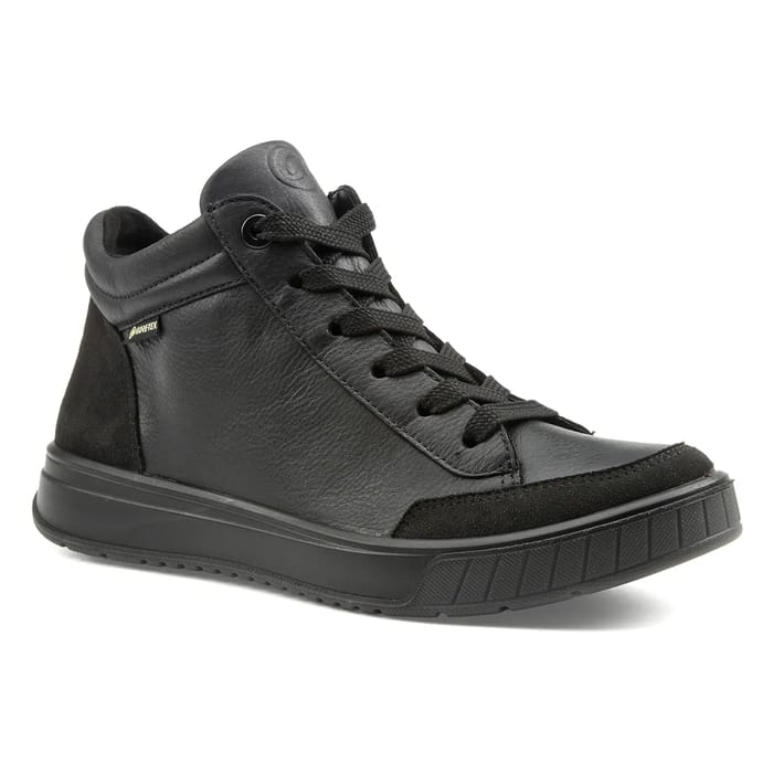 Les Sneakers montantes ROM 2.0 de la marque Ara offrent un confort de marche accru et un design moderne. Le dessus et la tige sont conçus en cuir et en synthétique, tandis que la doublure est faite de textile chaud protégé par Gore-Tex. La semelle intérieure est amovible et en textile, tandis que la semelle extérieure est en synthétique. Le talon mesure 25 mm. Les détails de ce modèle incluent un basket en cuir. La couleur est noir. Ces chaussures sont conçues pour des activités quotidiennes et demi-saison, et sont idéales pour les amateurs de mode qui recherchent un style urbain et tendance. Les Sneakers montantes ROM 2.0 de la marque Ara combinent maintien, style et polyvalence, ce qui les rend parfaites pour les personnes qui veulent un confort de marche accru tout en étant à la mode. -