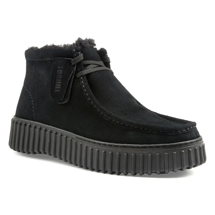 Les bottines Torhill de la marque Clarks sont des bottines à lacets conçues pour les saisons froides. Leur dessus et tige sont en daim, offrant une texture douce et confortable. La doublure en laine chaude garantit une chaleur optimale pour les pieds. Les semelles intérieures en textile sont amovibles et facilement lavables. Les semelles en synthétique offrent une protection solide et une durabilité. Les talons mesurent 45 mm, ce qui les rend idéales pour les activités extérieures comme le travail ou les randonnées. Les bottines sont conçues dans un style décontracté et robuste, avec des détails tels que des lacets noirs et des visibles coutures le long des coutures. Leur aspect fonctionnel est axé sur le confort, le maintien et la protection. Les bottines Torhill sont disponibles en noir, une couleur neutre qui convient à de nombreux styles vestimentaires. -