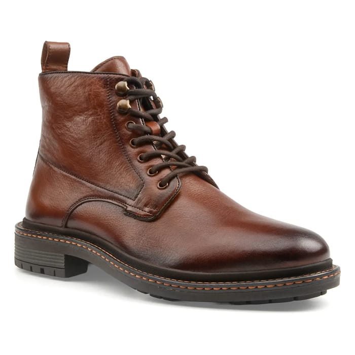 Les bottines Leeds de la marque Daniel Kenneth allient style et fonctionnalité dans une silhouette en cuir brun à fini poli. Conçues pour les saisons automne-hiver, ces bottines à lacets s'inscrivent dans une gamme décontractée et robuste, idéale aussi bien pour le travail que pour les activités extérieures. Le dessus en cuir véritable, associé à une doublure intérieure en cuir, assure un confort durable tout au long de la journée. La semelle intérieure en cuir est amovible pour un entretien facile et un ajustement personnalisé. Le modèle repose sur une semelle en gomme résiliente avec une empreinte de tige épaissie et des coutures oranges visibles le long du contrefort, renforçant la durabilité. Un talon souple et une languette arrière facilitent l'enfilage, tandis que les œuvrettes métalliques permettent un serrage régulier et sécurisant. Ce chaussant offre un maintien optimal et une protection efficace dans des conditions extérieures variées. -