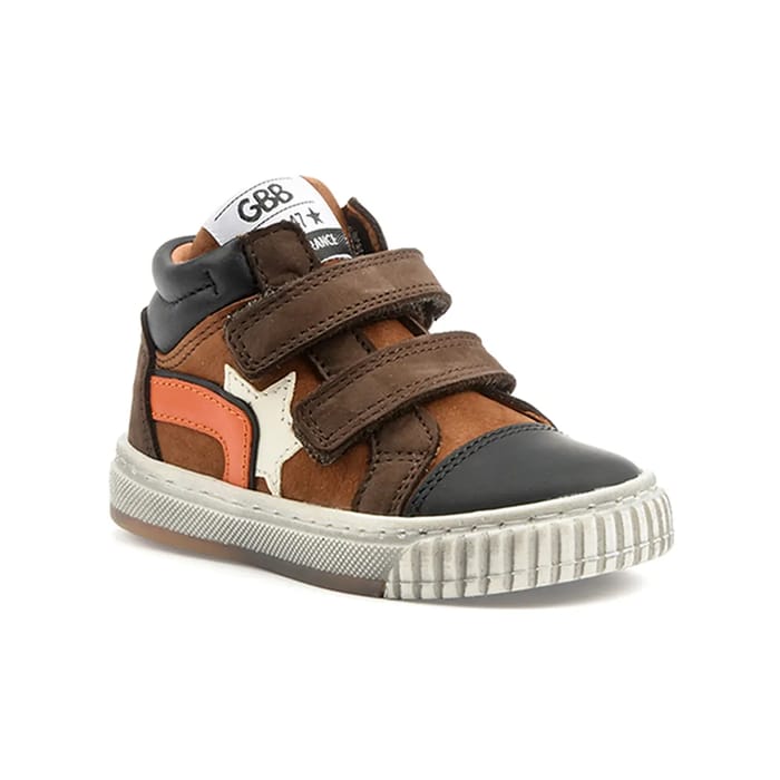 La Drôle, créée par la marque Gbb, est une bottine pour enfants conçue pour être robuste et confortable. Le dessus et la tige sont faits en nubuck et cuir, tandis que la doublure est en cuir. La semelle intérieure est également en cuir et peut être facilement retirée. La semelle extérieure est en gomme, offrant une durabilité et une résistance à l'usure. La bottine est dotée de deux bandes de Velcro pour un ajustement facile et rapide. La couleur est brun, avec des détails en cuir nubuck qui donnent un aspect raffiné. Des touches d'orange et de noir ajoutent une touche de style, tandis que la petite étoile blanche sur le côté ajoute une touche de personnalité. La Drôle est une excellente option pour les enfants qui aiment jouer et explorer tout en étant bien chaussés. -