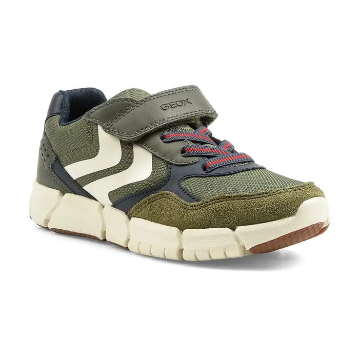 Les FLEXYPER de Geox allient style et confort pour offrir une chaussure idéale au quotidien. Conçue dans une matière textile et synthétique, elle présente un dessus à texture avec des inserts en maille respirante pour une aération optimale. La semelle extérieure en gomme, dotée de détails en caoutchoutier brun, assure une stabilité discrète tout en restant légère. L'aspect pratique de cette basket est renforcé par sa fermeture à velcro, qui permet un ajustement rapide et sécurisé, tandis que la semelle intérieure amovible en textile offre un confort personnalisé. Disponible en kaki, ce modèle s'inscrit dans une gamme décontractée et polyvalente, adaptée aussi bien aux loisirs qu'à une mobilité quotidienne. La marque Geox, reconnue pour ses innovations technologiques et ses semelles respirantes, assure un bien-être immédiat dès la première marche. -