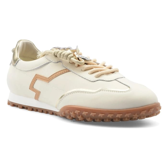 Les sneakers Cielo de la marque Giove allient élégance intemporelle et style urbain pour un look raffiné au quotidien. Conçues en cuir de qualité, elles marient douceur et résistance, parfaites pour une utilisation quotidienne, que ce soit pour une balade en ville ou des loisirs. Leur tige met en valeur des inserts bijoux subtilement intégrés, ajoutant une touche de sophistication à leur design sobre. La doublure en cuir et la semelle intérieure amovible renforcent le confort, tandis que le talon de 10 mm offre un maintien naturel. Les lacets blancs, associés à des œillets soigneusement cousus, et les détails dorés sur le talon et les agrafes apportent une élégance discrète. Leur couleur beige, rehaussée par des motifs en chevron et des accents métallisés, en fait un modèle polyvalent, aussi à l’aise dans un dressing minimaliste que dans une tenue décontractée. Idéales pour celles et ceux qui recherchent un équilibre parfait entre style et praticité. -