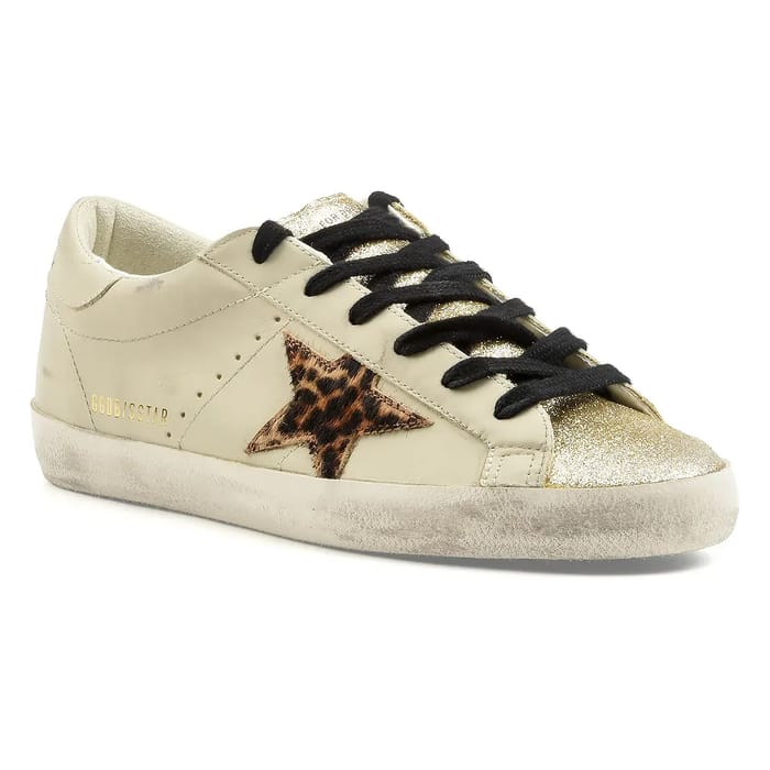 GWF00101.F007524.15741 SUPER STAR LEATHER UPPER GLITTER TOE AND TONGUE LEATHER HEEL LEOPARD HORSY ST -