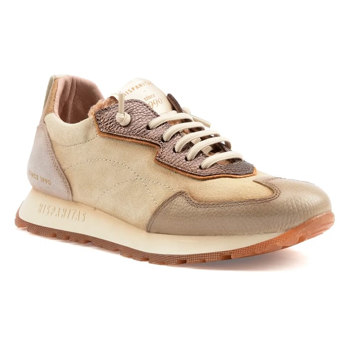 Les sneakers Hispanitas Kansas sont conçues pour les amoureux de la mode et du confort. Ces chaussures tendance, disponibles en beige, combinent un dessus et une tige en cuir et daim pour une allure élégante. Le cuir doublure garantit une douceur et une légèreté optimales. Les semelles intérieures en cuir sont amovibles, facilitant ainsi la maintenance et le nettoyage. Les semelles synthétiques assurent une durabilité et une résistance à l'usure. Les talons mesurent 30 mm, offrant ainsi une bonne stabilité et une protection des pieds. Les détails de la chaussure incluent un basket en cuir, ajoutant une touche de sophistication. Les Hispanitas Kansas sont idéales pour les activités quotidiennes, la marche et les loisirs. Elles offrent une combinaison parfaite de mode, de confort et de polyvalence, les rendant parfaites pour les personnes qui recherchent une chaussure versatile et élégante. -