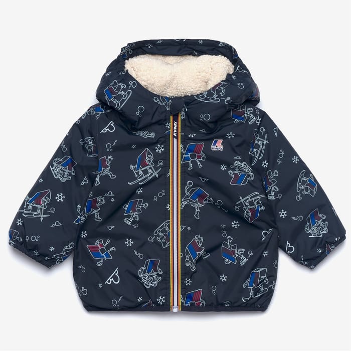 Cette veste K-way est un élément essentiel de votre tenue quotidienne. Conçue dans un style décontracté et chic, elle s'adapte parfaitement à tous les moments de la journée, qu'il s'agisse d'un trajet au travail, d'une sortie en ville ou d'une promenade en ville. En choisissant le bleu marine, vous optez pour une couleur qui s'harmonise avec tous les looks. Dotée d'une doublure en sherpa en polyester, cette veste assure un confort optimal tout en offrant une protection efficace contre les intempéries. L'aspect fonctionnel est remarquable grâce à son design pensé pour le confort, sa capacité à résister aux conditions météorologiques et son élégance naturelle. Le détail d'un dessin d'enfants en train de skier et de snowboard sur fond de neige ajoute une touche d'originalité. La fermeture centrale avec des éléments colorés aux bords et les manches élastiques garantissent un ajustement parfait. Le logo K-WAY est imprimé sur l'aile droite du torse, tandis que des motifs de flocons de neige ornementent le tissu. Cette veste de pluie est idéale pour les jours de pluie ou de température fraîche. -