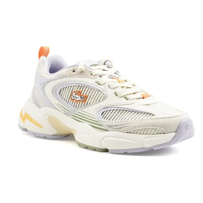 Les STORM 96 2K de Lacoste sont des sneakers polyvalentes conçues pour les amoureux de la mode et du confort. Ces chaussures tendance sont dotées d'un dessus et d'une tige en textile et synthétique, offrant une combinaison de flexibilité et de résistance. La doublure en textile assure une douceur supplémentaire au pied. Les semelles intérieures en textile et amovibles peuvent être remplacées facilement, prolongeant ainsi la durée de vie des chaussures. Les détails de ces sneakers sont soigneusement conçus pour plaire à tous les amateurs de mode. Un logo crocodile en orange sur le côté ajoute une touche de personnalité, tandis que les accents lumineux en pourpre autour de la partie arrière et les détails en jaune près du talon créent un effet visuel dynamique. Les fines bandes vertes le long du midsole ajoutent une touche de design supplémentaire. Les lacets, qui correspondent au schéma de couleur global de la chaussure, complètent l'ensemble. Les STORM 96 2K sont parfaites pour les amoureux de la marche, des loisirs et de la mode. Elles sont conçues pour être portées tous les jours, offrant un mélange de confort et de style qui répond aux attentes de tous les amateurs de mode. -